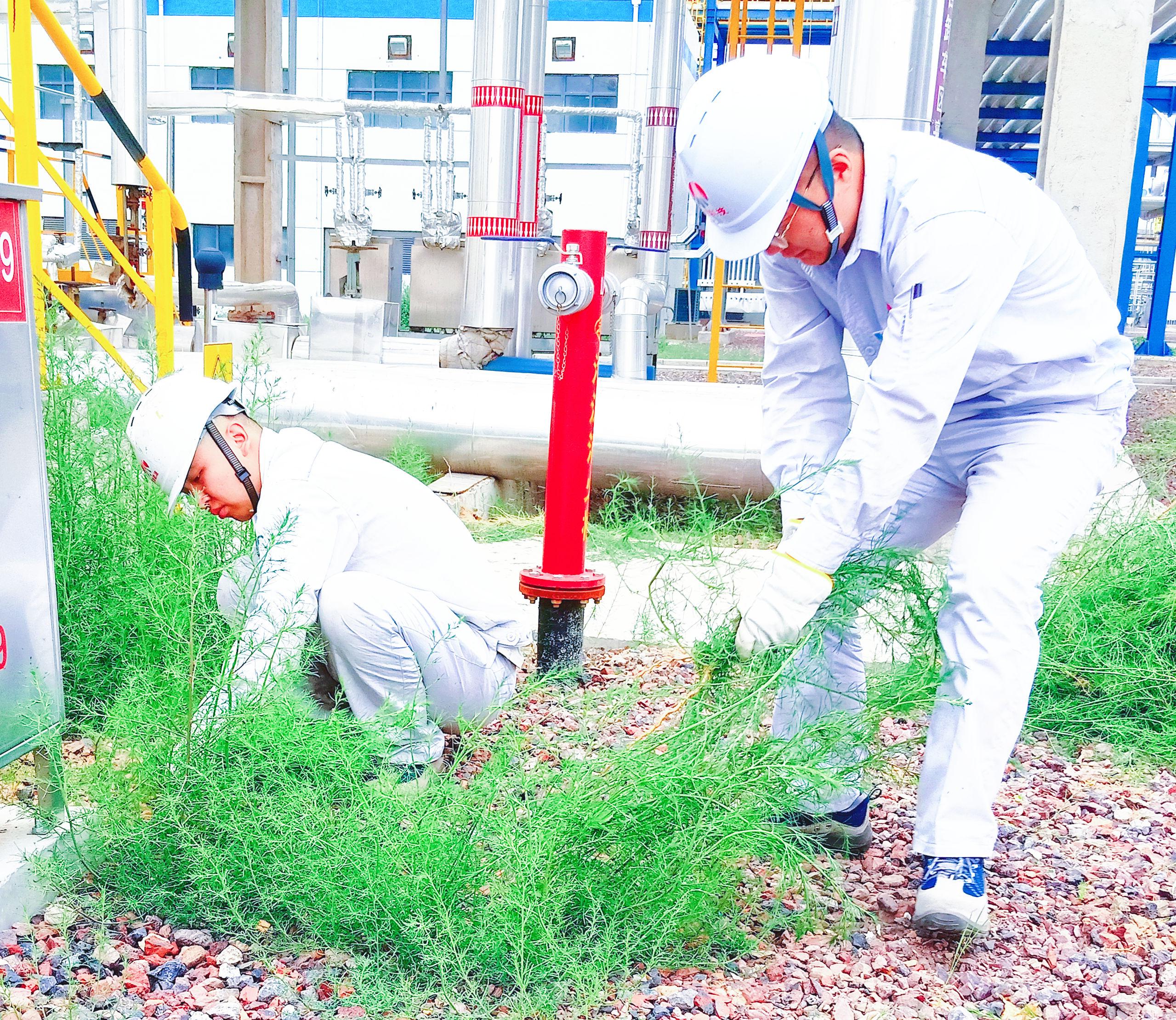 一線員工在烈日下進(jìn)行義務(wù)勞動,他們將整個區(qū)域的雜草、枯枝清理干凈,消除火災(zāi)隱患