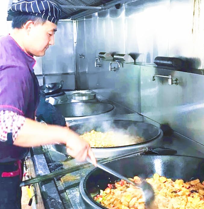 守著爐灶為一線員工烹制佳肴,40℃以上的高溫與火共“舞”