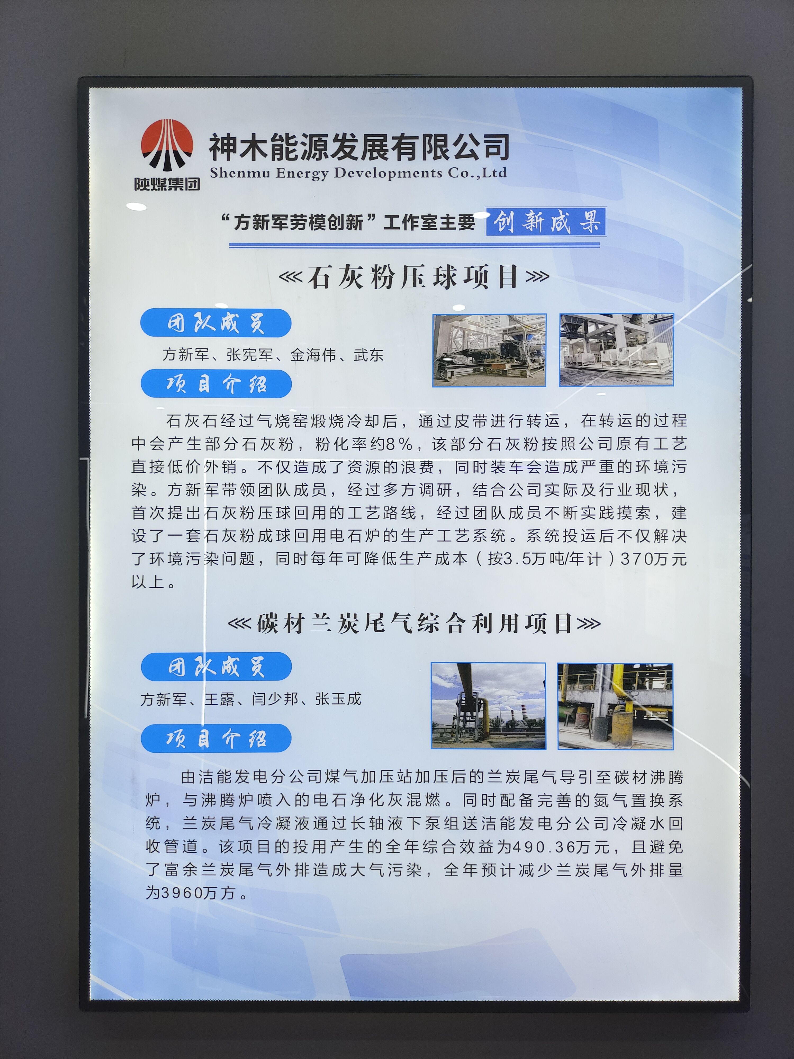 “典例上墻”展風(fēng)采。能源公司將《石灰粉壓球項目》《蘭炭小料的摻燒》《電石爐智能化升級改造》《一二期主蒸汽、朱凝結(jié)水管道并聯(lián)項目》《現(xiàn)代化集中控制室升級改造》等重要創(chuàng)新成果定制成欄,裝于墻體,以激發(fā)員工創(chuàng)新意識,增強(qiáng)員工創(chuàng)新能力,加強(qiáng)各分公司之間的科技創(chuàng)新與交流互鑒,優(yōu)化科研管理并促進(jìn)公司技改技措及轉(zhuǎn)型升級發(fā)展。