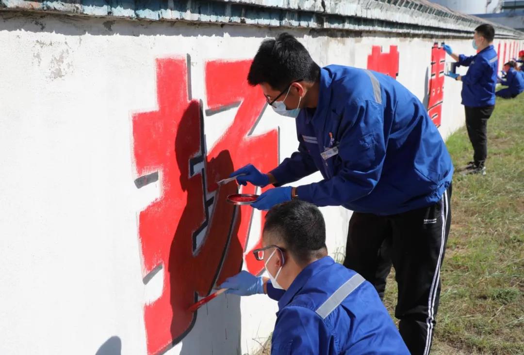 近日,天元公司生產第三黨支部開展“繪廠區宣傳語、揚黨員新風尚”主題黨日活動,全體黨員在支部書記的帶領下,對廠區二道門至檢修車間門口圍墻宣傳標語進行重新粉刷。