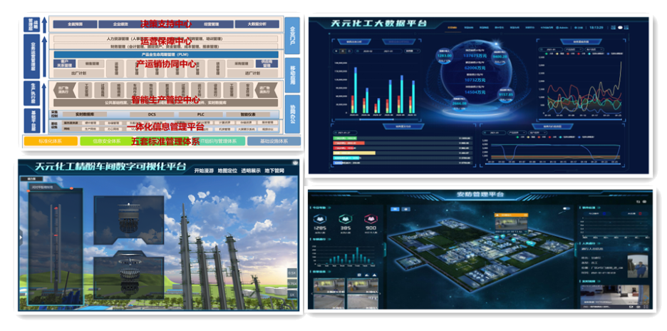 目前,“陜煤天元化工智慧工廠”數(shù)字化應(yīng)用場(chǎng)景一期已完成總體建設(shè)。精酚車間3D數(shù)字孿生項(xiàng)目采用虛擬現(xiàn)實(shí)技術(shù)、三維仿真技術(shù)和虛實(shí)聯(lián)動(dòng)技術(shù)構(gòu)建出一個(gè)逼真的可交互3D數(shù)字化環(huán)境,實(shí)現(xiàn)了多元異構(gòu)數(shù)據(jù)的聯(lián)通及產(chǎn)品設(shè)計(jì)、制造和智能服務(wù)等閉環(huán)優(yōu)化,確保了生產(chǎn)活動(dòng)的科學(xué)性、安全性,并為后續(xù)項(xiàng)目及生產(chǎn)車間推廣使用提供有效模型。在Hadoop等技術(shù)的基礎(chǔ)上逐步完成了大數(shù)據(jù)業(yè)務(wù)平臺(tái)建設(shè),完成ERP系統(tǒng)大部分?jǐn)?shù)據(jù)的匯聚、加工和整理,建立了統(tǒng)一的各業(yè)務(wù)域的數(shù)據(jù)模型,實(shí)現(xiàn)數(shù)據(jù)的標(biāo)準(zhǔn)化和規(guī)范化,聚焦于產(chǎn)品銷售、原料采購、生產(chǎn)管理等領(lǐng)域的數(shù)據(jù)分析和大屏呈現(xiàn),可及時(shí)直觀的掌握采購、銷售、生產(chǎn)的動(dòng)態(tài)趨勢(shì)以及歷史對(duì)比情況。智慧安防方面,已完成各功能模塊的開發(fā)及上線運(yùn)行。智慧物流方面,油品、碳品完成整體建設(shè)并上線運(yùn)行……