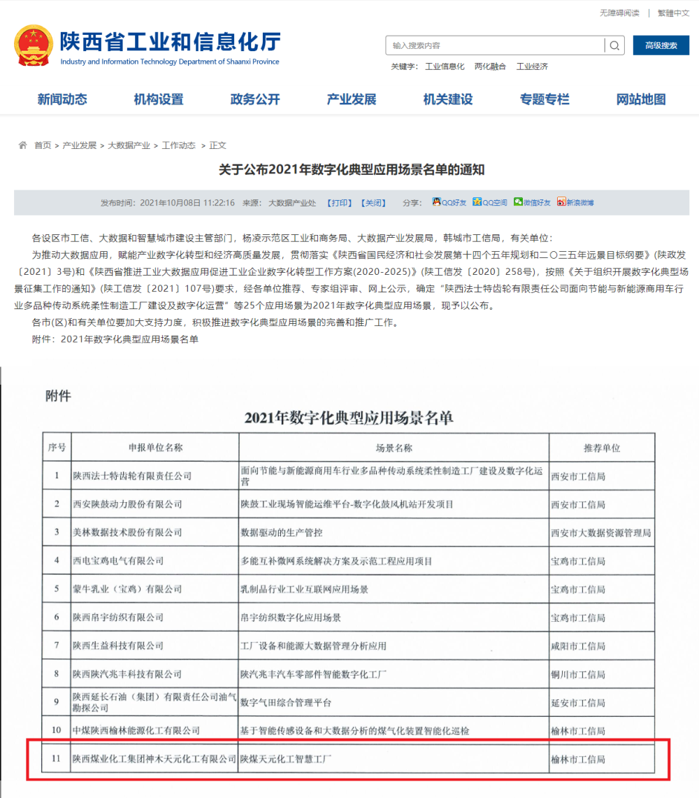 近日,陜西省工業(yè)和信息化廳公布了2021年數(shù)字化典型應(yīng)用場(chǎng)景名單,名單涉及25個(gè)來自各行業(yè)的數(shù)字化應(yīng)用場(chǎng)景。“陜煤天元化工智慧工廠”數(shù)字化應(yīng)用場(chǎng)景由榆林市工業(yè)和信息化局推薦,經(jīng)過專家組評(píng)審、網(wǎng)上公示等環(huán)節(jié),最終成功入選。