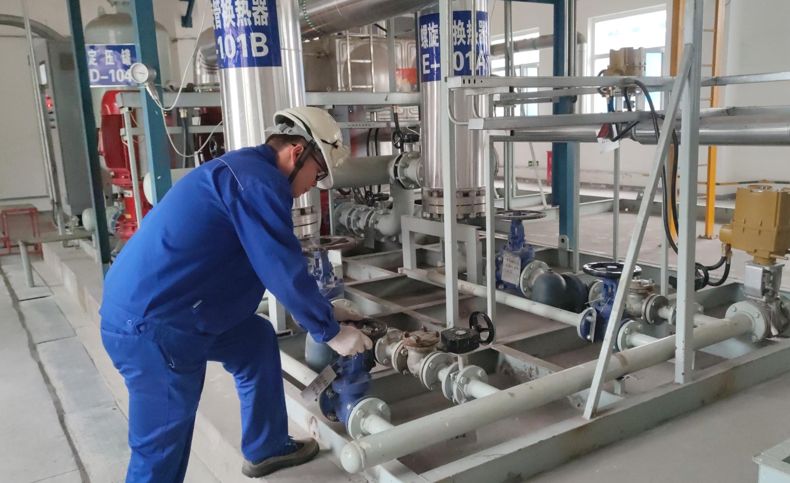 在動力站,筆者看到工人師傅正在對設備進行檢查,他們?yōu)閺S區(qū)的供暖工作提供著有力的保障。為確保公司一、二期廠區(qū)廣大員工溫暖過秋冬,富油公司提前安排部署、早早落實行動,公用儲運中心節(jié)前開始做好各項供熱準備工作,及時與相關部門溝通協(xié)調(diào),利用國慶節(jié)期間組織人員對所有供熱設備進行了全面檢測,對易損配件早早儲備入庫,確保供暖設備發(fā)生故障時能夠及時得到維修,保障正常供暖。10月12日開始進入試供暖階段,上午富油公司陸續(xù)安排組織對供熱系統(tǒng)注水打壓試漏,截至13日生產(chǎn)生活區(qū)基本全部正常供暖。