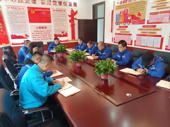 10月13日,天運(yùn)運(yùn)輸黨支部組織全體黨員領(lǐng)導(dǎo)干部集中學(xué)習(xí)習(xí)近平總書記來(lái)陜考察重要講話重要指示精神。(郭海波 杜江波)