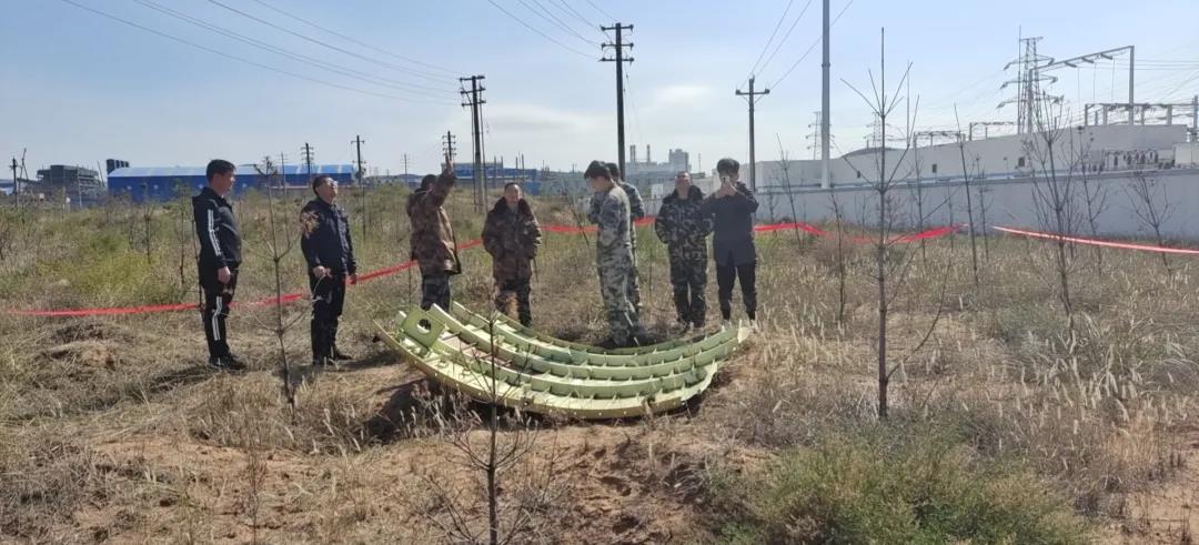 所有人員備戰執勤至16日清晨。得到指示后,能源公司積極響應神木市政府相關要求,派出消防救援隊在能源公司附近搜索整流罩殘骸。劉建在出發前要求:發現殘骸及時保護,設立警戒,嚴禁無關人員靠近,并第一時間匯報能源公司領導。在搜索過程中能源公司消防救援隊高黨庫發現消防隊營房正面沙漠中有閃光金屬物,即刻上前查看,經辨識為神州13號載人飛船整流罩殘骸,立即通知能源公司領導,并對現場進行警戒封鎖,能源公司領導接報立即趕赴現場查看,確認后上報至神木市蘭炭特色產業園區管委會,12時30許,由神木市相關人員到場查看,并于組織安排一輛輕型載貨車將飛船整流罩殘骸轉運離開能源公司范圍。(能源公司 饒航)