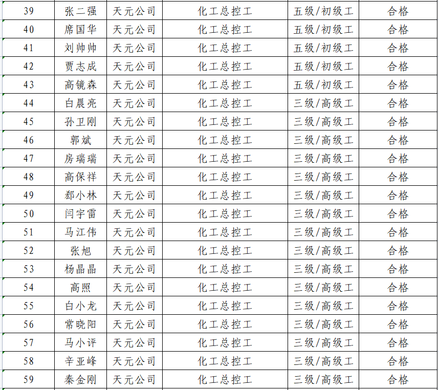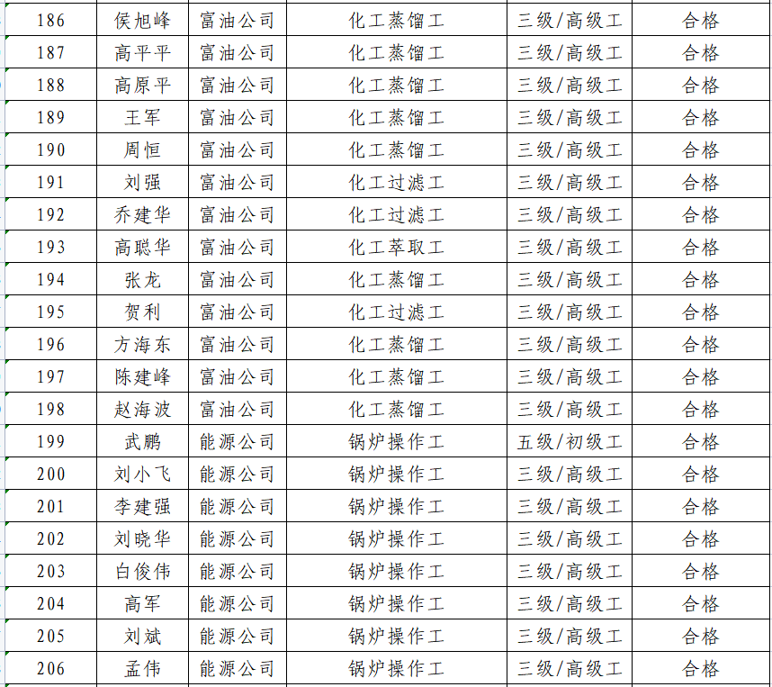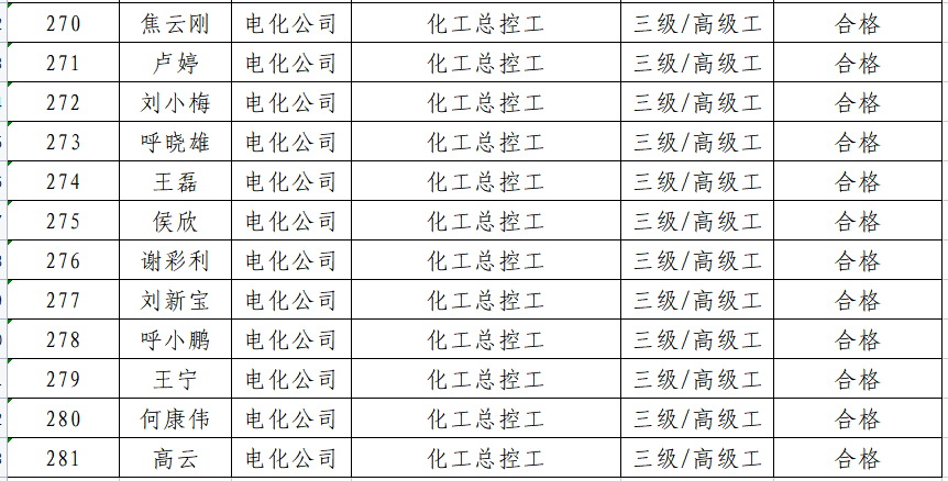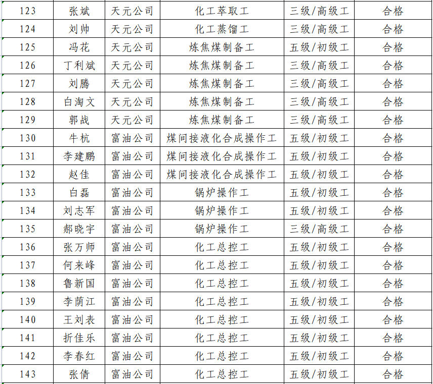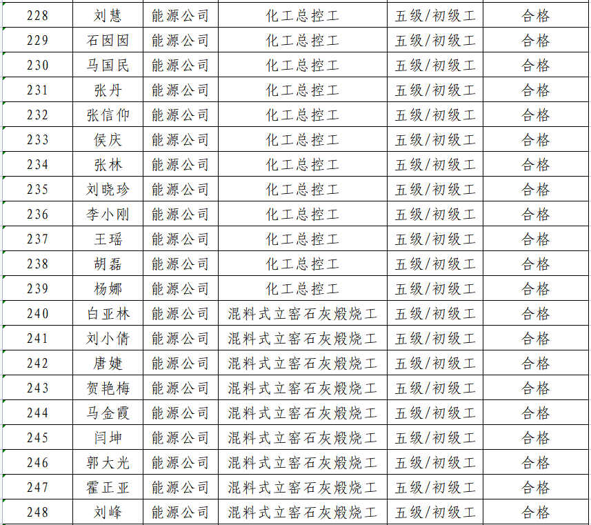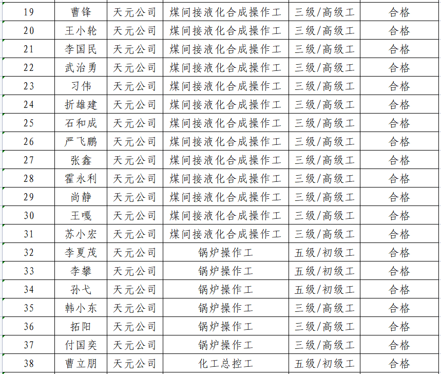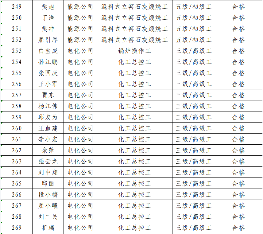 附件:神木煤化工公司2021年度職業技能等級認定初中高級擬通過人員名單
