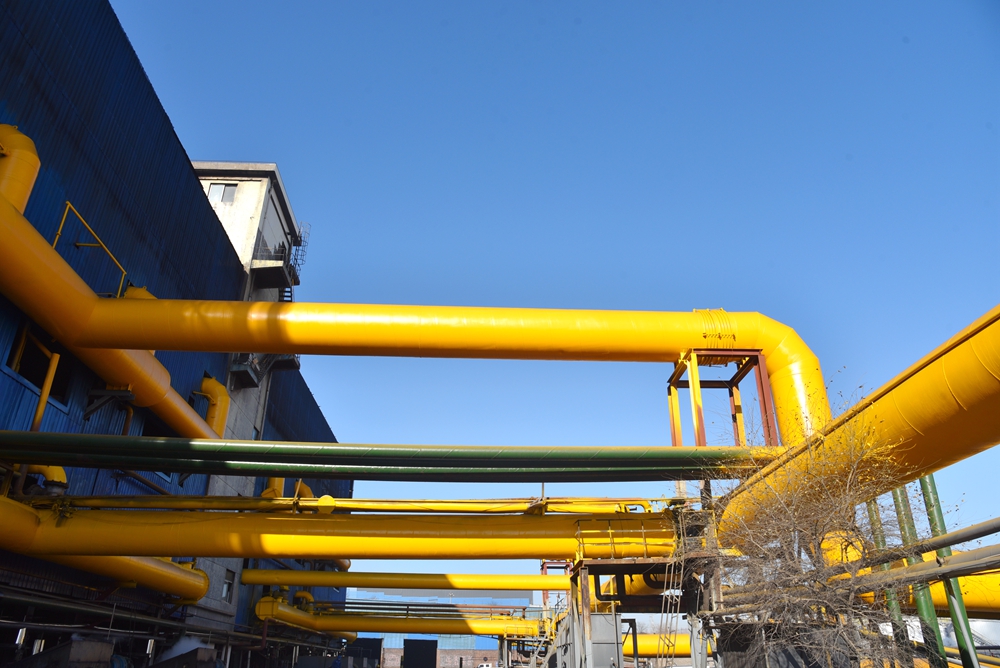 一系列工序后,一條條管道穿上黃色的新冬裝。冬日的午后,金色的陽光透過一條條黃色煤氣管道,放眼望去,分外的亮麗。(張浩)