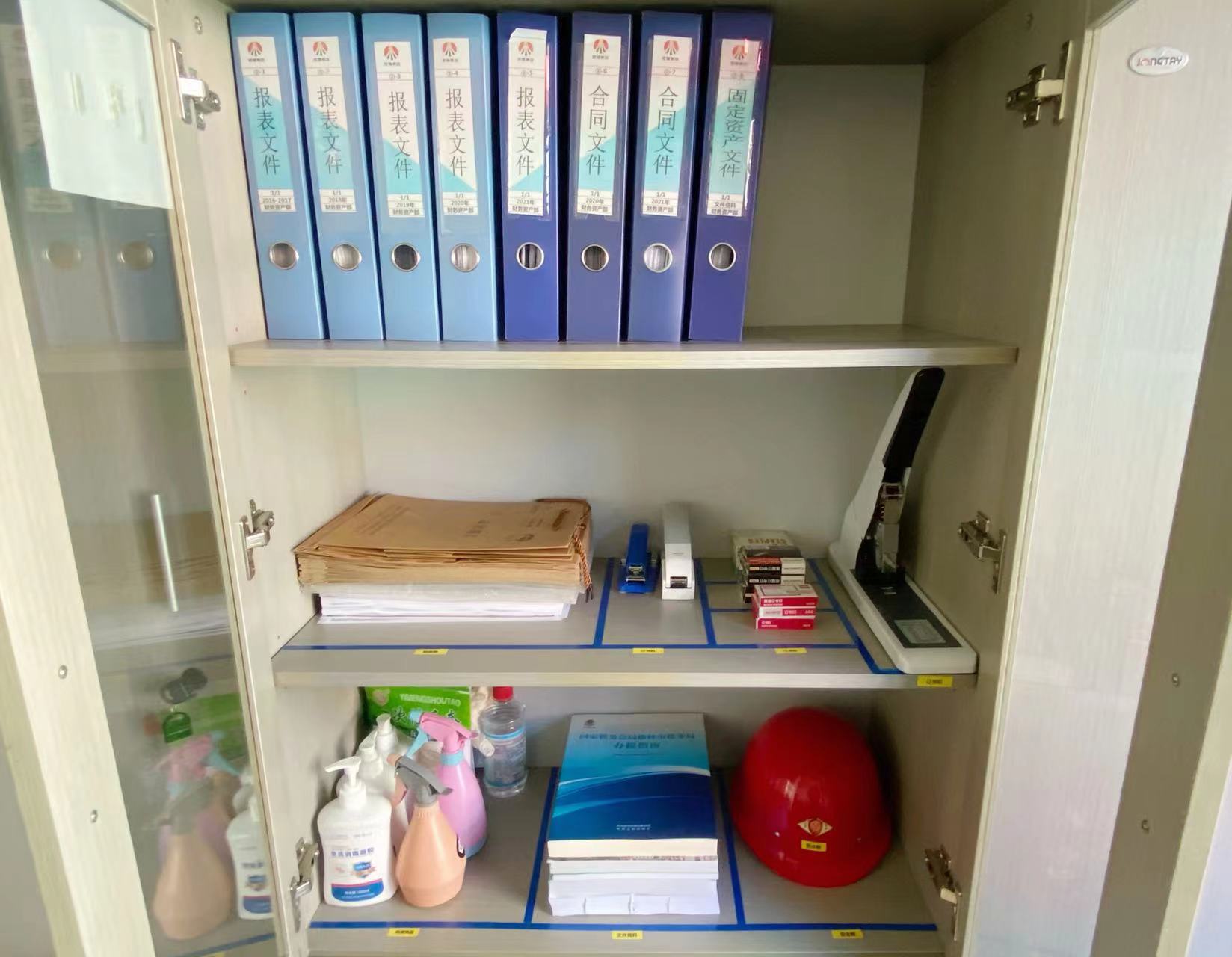 物品定位,文件入盒,文件盒按顏色分區(qū)擺放,書(shū)籍排列整齊,清單一目了然。走進(jìn)電化公司行政辦公室,干凈整潔的桌面、擺放整齊的書(shū)架格外矚目。