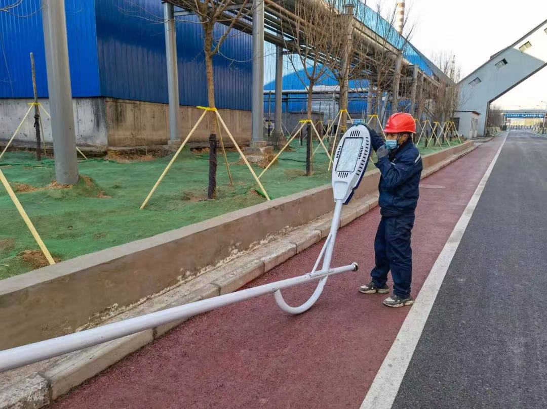 “燈頭、燈桿安裝不難,今天就能完成,地下穿線和取電源比較復雜,但我們有的是力氣,利用休息時間獲取酬勞大家都樂意的很。”檢修班長劉寶山笑著說到。