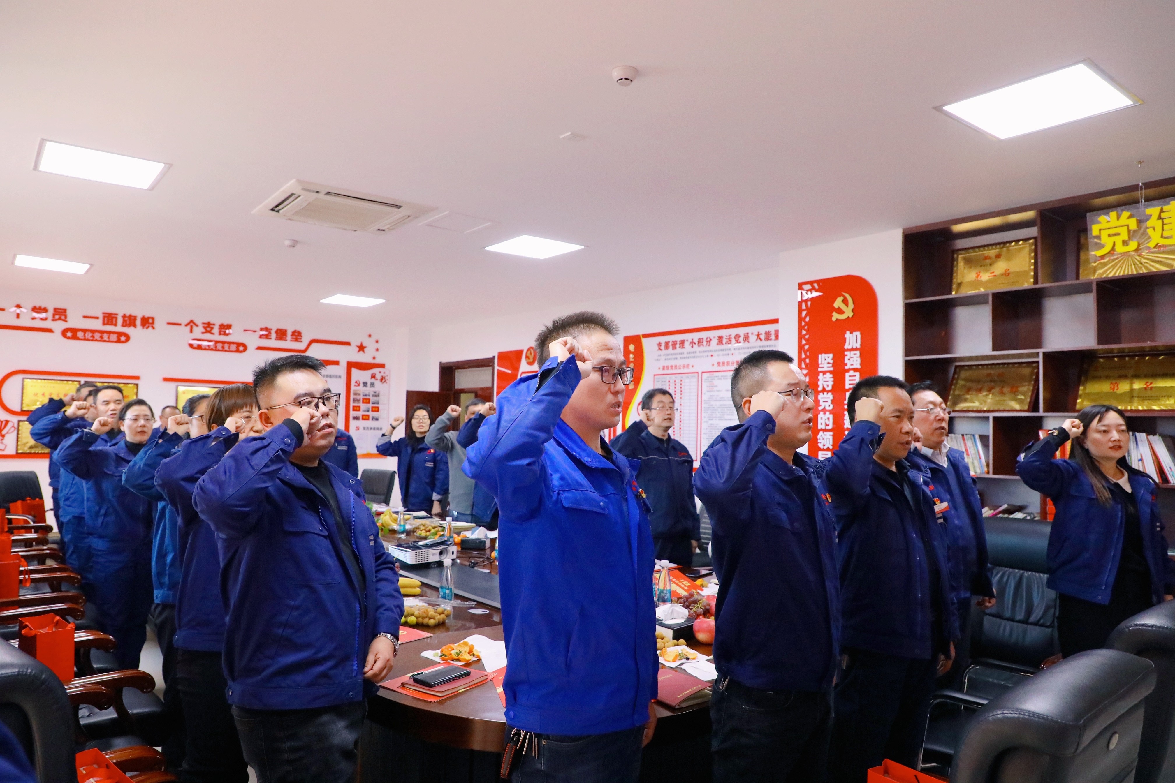 會上,支部委員張文韜同志組織大家學習習近平總書記重要講話精神,大家聚精會神傾聽,認真做著筆記。支部委員高愉同志將政治生日賀卡、政治生日紀念品發到每一位黨員手中,并帶領大家重溫入黨誓詞。