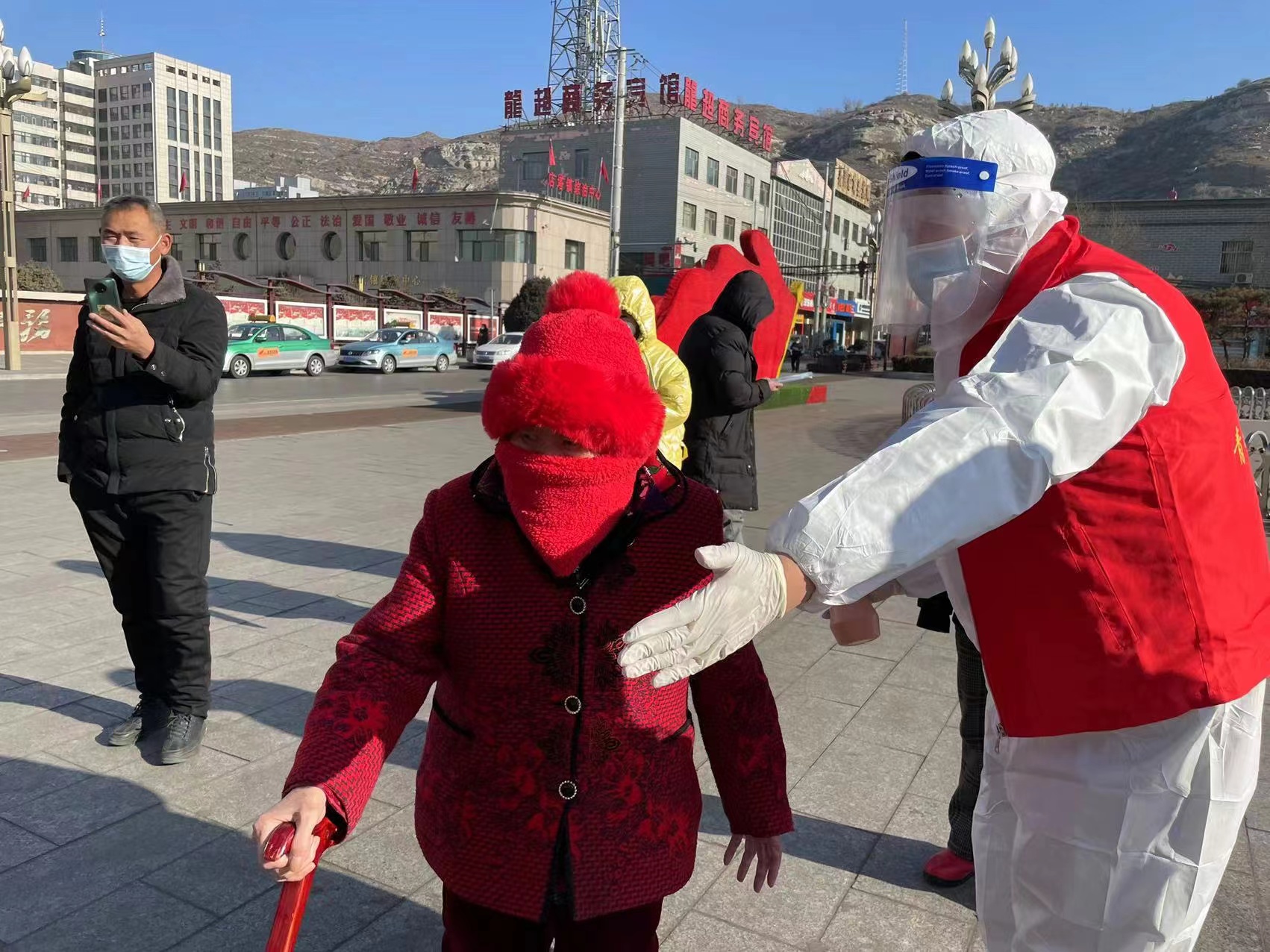 在“攤位”上,大家分工合作,張嬌同志擔任疫情防護知識宣傳員,兩名志愿者承擔物資發放及產品說明的“售貨員”。另兩名志愿者測量體溫、對現場環境消殺并維護好現場秩序。他們不顧個人安危,為過往的店塔鎮民發放疫情防控物資、宣傳疫情防護注意事項,爭做抗擊疫情的先行者、宣傳員和執行者,用實際行動為防疫抗疫作出應有的貢獻,用大愛筑起阻擊疫情的防線,助力店塔打贏防疫抗疫阻擊戰。