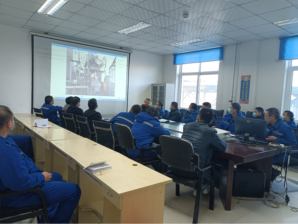 培訓過程中,天元公司公用車間設備副主任原衛明針對員工在螺桿壓縮機操作中存在的問題,他從螺桿壓縮機組成部件、壓縮原理、滑閥原理、油路系統、常見故障現象原因分析以及排除方法等方面進行了深入的講解。在場員工都認真聽講,積極參與互動,并提出自己的疑惑。