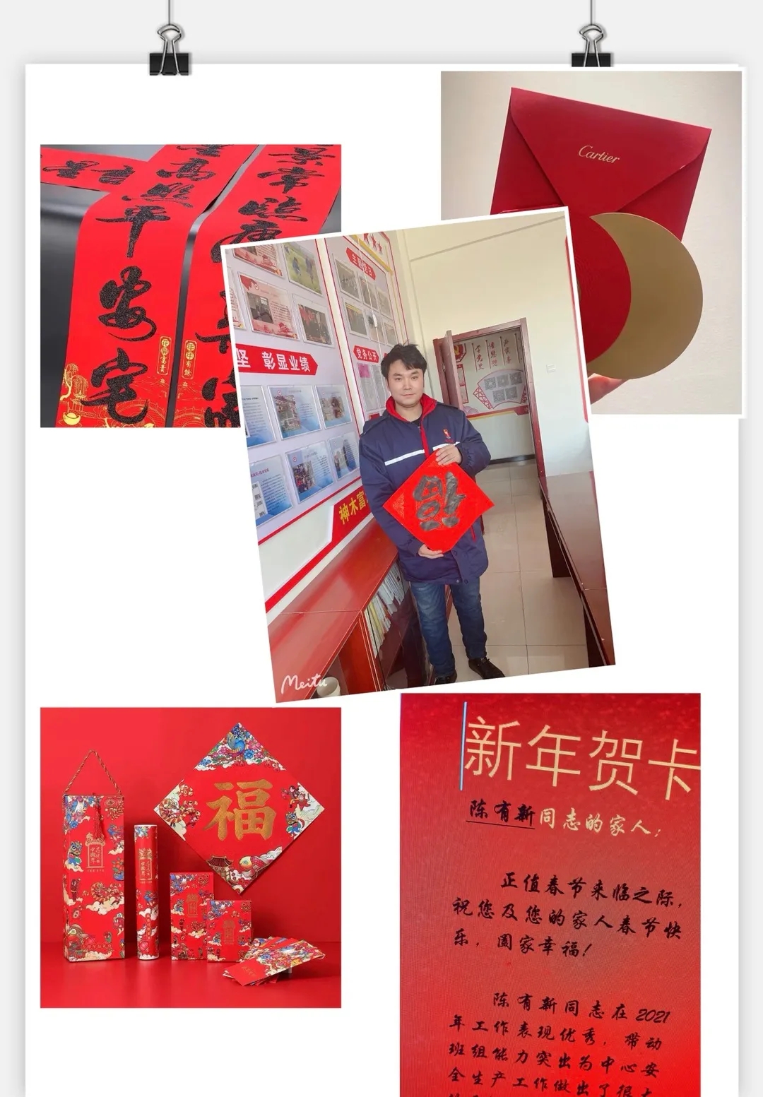 為了讓留守黨員和職工感到暖心、舒心,讓他們的親人感到安心、放心,支部專門為每個人精心制作一個愛心禮包。禮包內,既有新春對聯,給家人帶去喜氣、福氣;又有新年祝福家書,祝福家人在新的一年里福氣滿滿、好運連連;還有職工工作的照片,讓家人了解親人的工作環境和工作狀態。