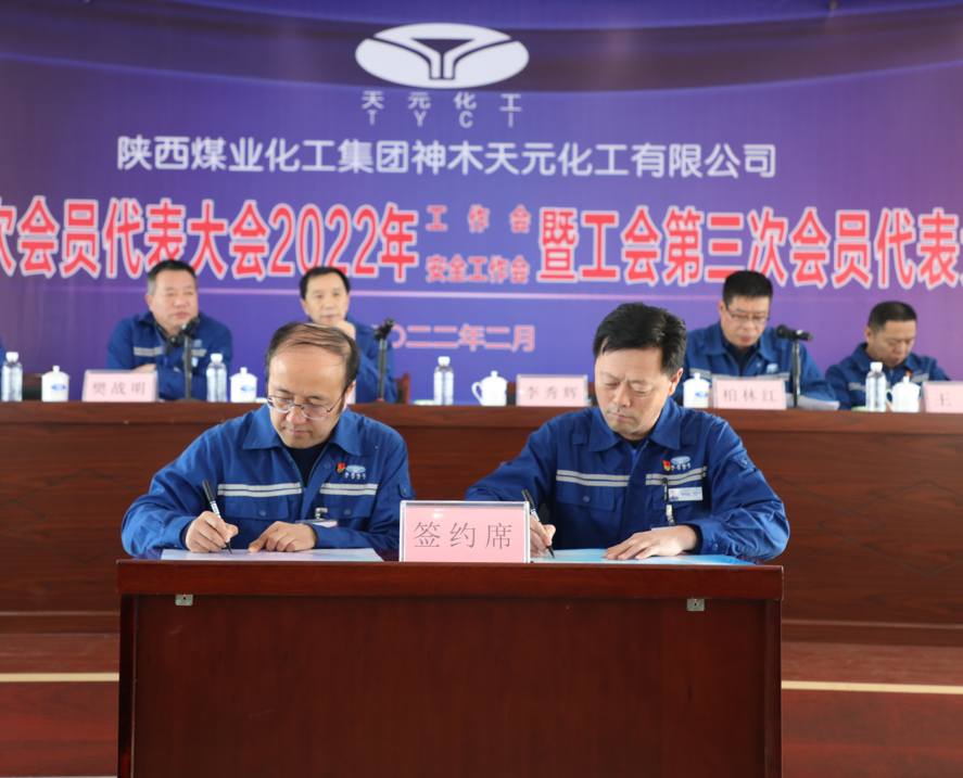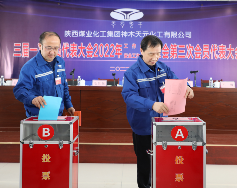 會議還聽取審議了天元公司黨委副書記、紀委書記、工會主席樊戰明作的題為《融入中心創實效精準服務聚合力 為公司轉型升級高質量發展提供堅強保障》的二屆工會委員會工作報告,聽取了天元公司安全總監王小龍作的題為《深學苦練強本領 防微杜漸保安全 攻堅克難促環保 降污減排守藍天 為公司轉型升級高質量發展保駕護航》的安全工作報告、《二屆工會經費審查委員會工作報告》和《二屆六次會員代表大會提案落實和三屆一次會員代表大會提案征集情況的報告》,選舉產生了新一屆工會委員會委員、工會經費審查委員會委員、女職工委員會委員和監事會職工代表,表彰了2021年度先進集體和先進個人。