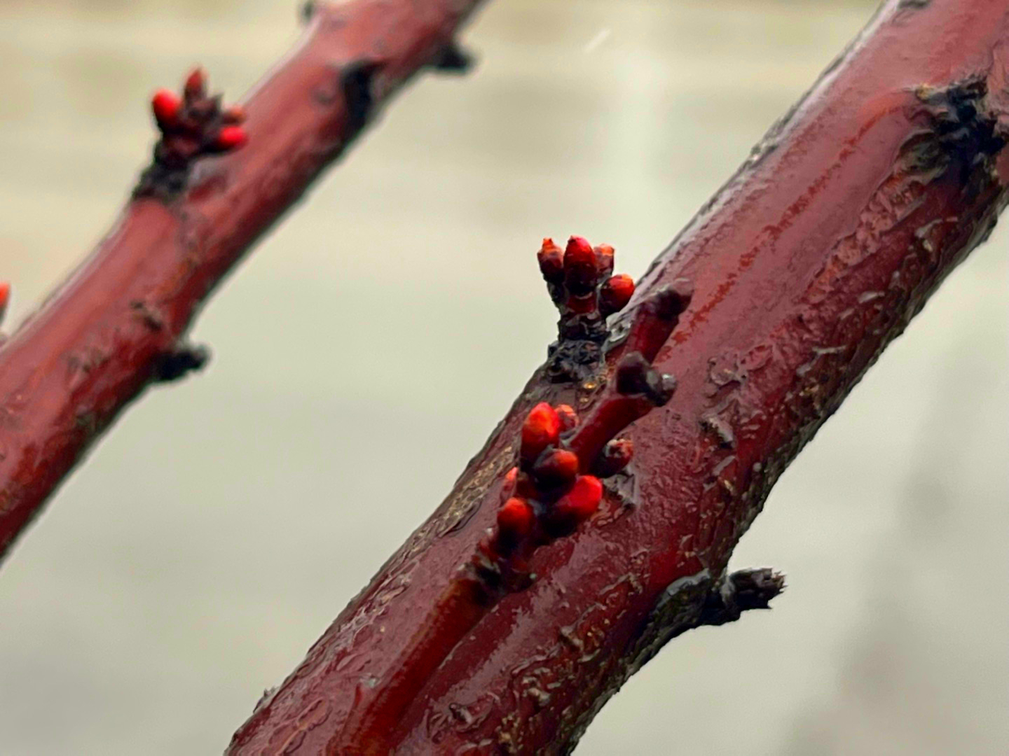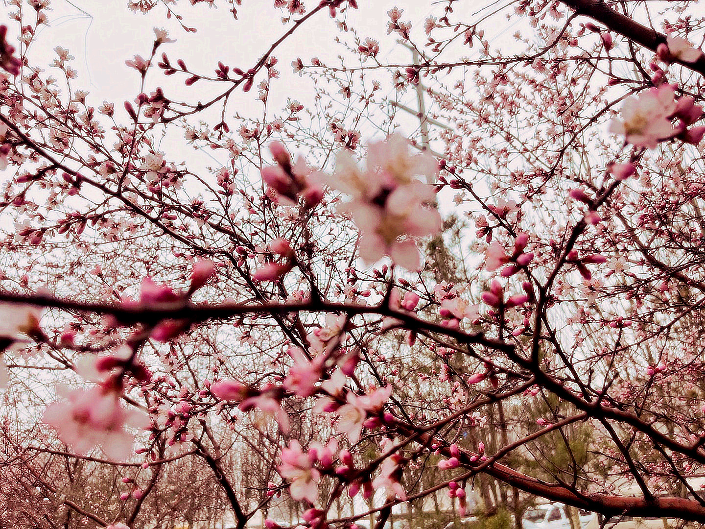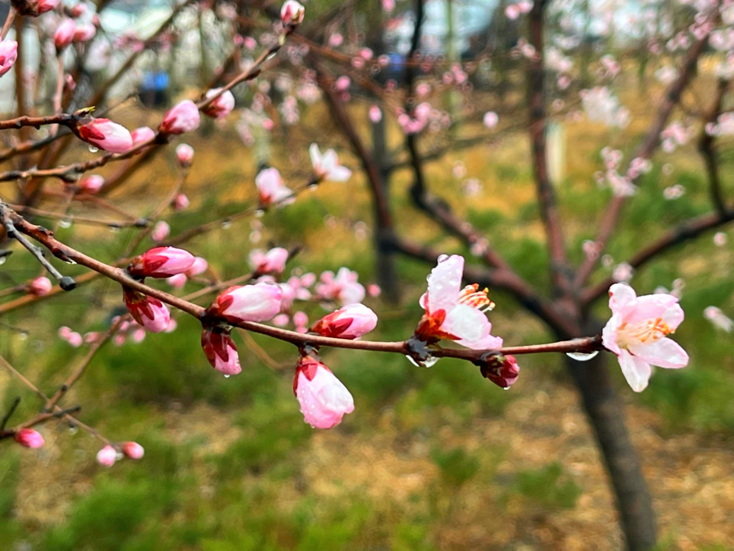 晨觀細雨落春枝,柳輕舒,燕嬌呼,報春遲,粉桃含苞怒。見伊笑,眼漸蘇,簇簇含羞綻,一如她心意,寸寸隨春染。(白雪蓉)