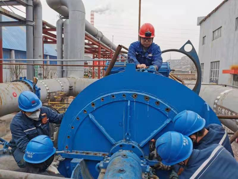 “軸封故障,泄露CO,必須盡快檢修,原本聯(lián)系了外委單位,對(duì)方合同報(bào)價(jià)6萬(wàn),公司領(lǐng)導(dǎo)鼓勵(lì)支持我們自主檢修,方案定下來(lái)后,說(shuō)干就干。”郭立軍簡(jiǎn)單介紹。